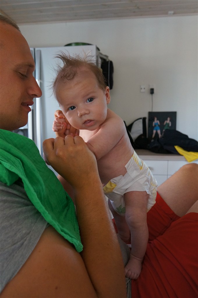 Tilgængæld lever han jo så af powernaps om dagen. Hvis vi går ture med barnevognen sover han, men så snart vi kommer hjem og står stille og der bliver stille, går der ikke mere end 10 min så er lille Aske vågen igen.