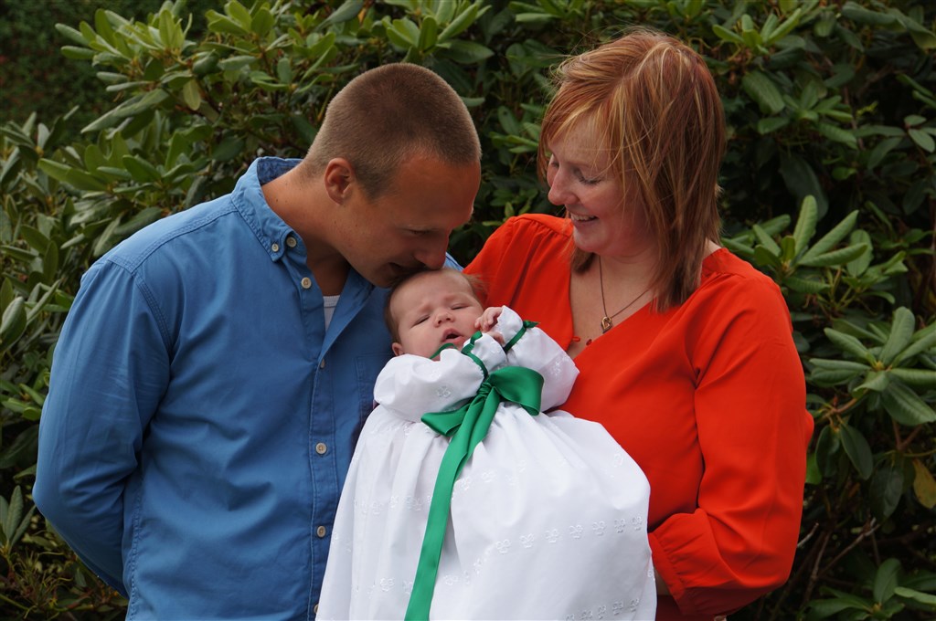 D. 11 aug. holdte vi barnedåb hjemme i haven. Aske klarede det bare så utrolig flot. Ingen gråd overhovedet. - Nu er det jo sådan at min familie bor langt væk og har jo derfor overnattet hos os siden fredag. Så jeg kunne jo godt mærke at Aske var noget mættet med indtryk da vi nåede søndagen..