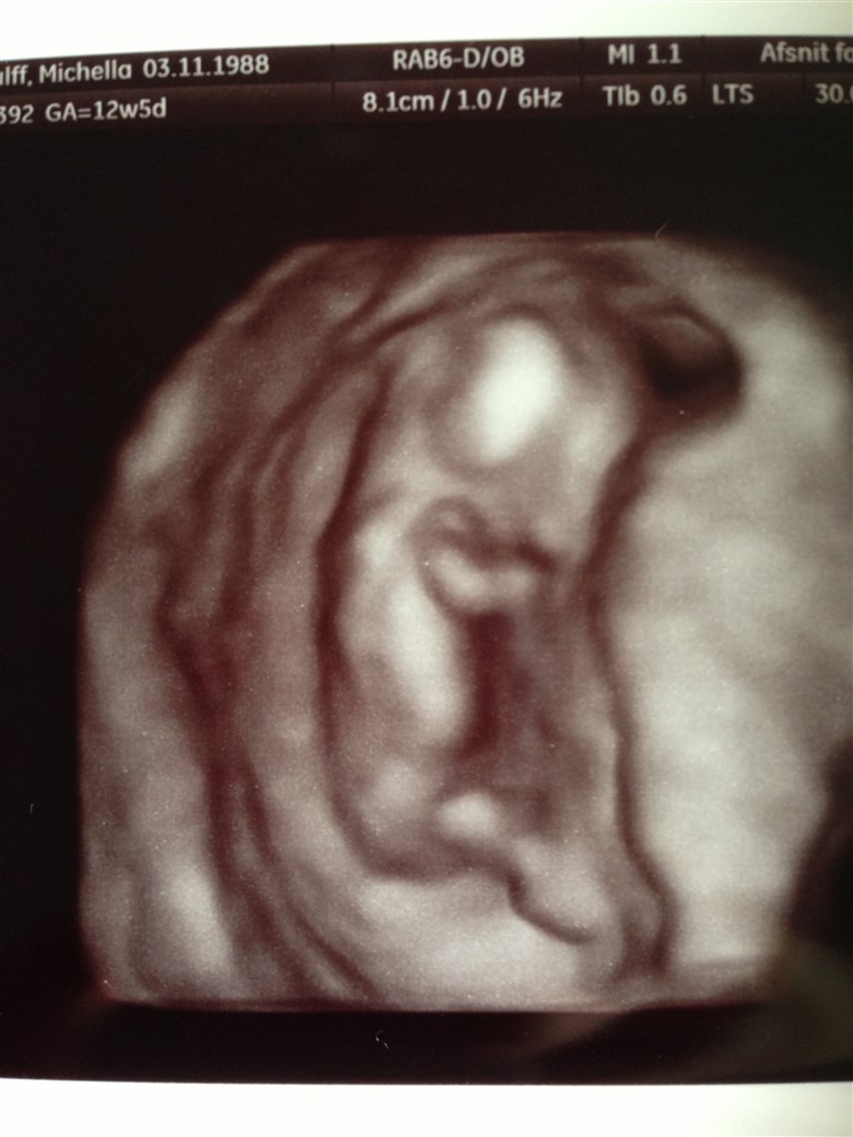 Efter ca. 30 min scanning fik vi afvide alt så rigtig fint ud og den lille stædige baby som ikk ville det samme som scanningsdamen havde fine tal på 1:18916 samt alt det andet den skal ha. Vi er så glade. Vi fik endda lige 2 3D billeder med samt 2 alm.