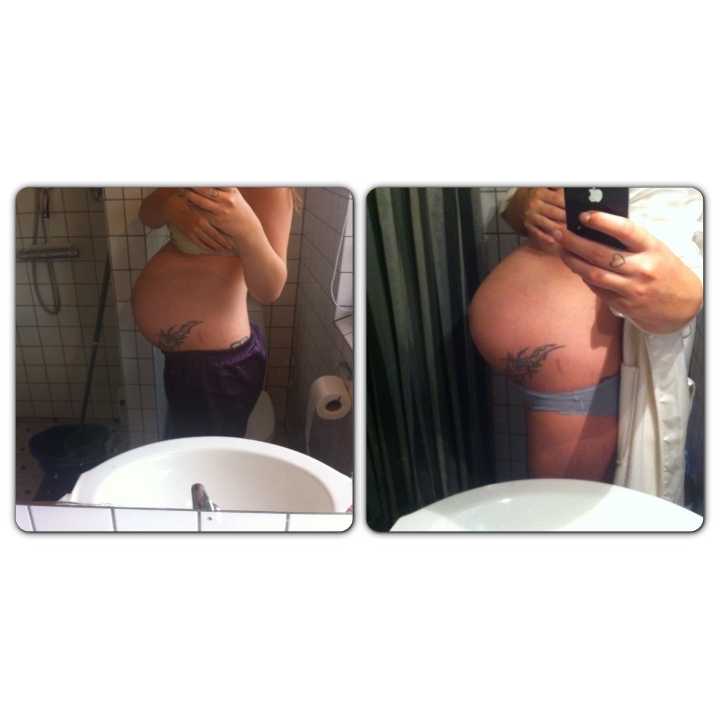 Trinebaby skriver: På det sidste billede er jeg 36+6 men hvor langt er jeg henne på det første