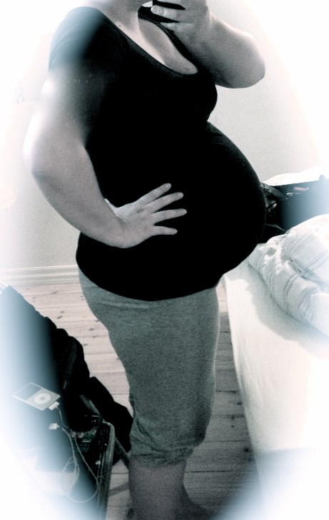 Tror du er få dage fra din termin Synes den er ret stor!