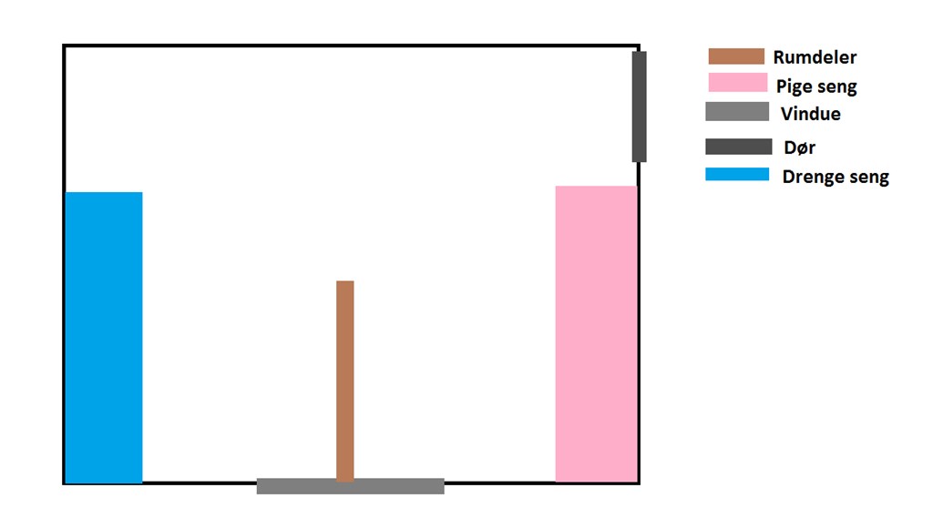 På mindstemandens værelse har vi vendt rumdeleren, så den står op - så går der mindst gulvplads!