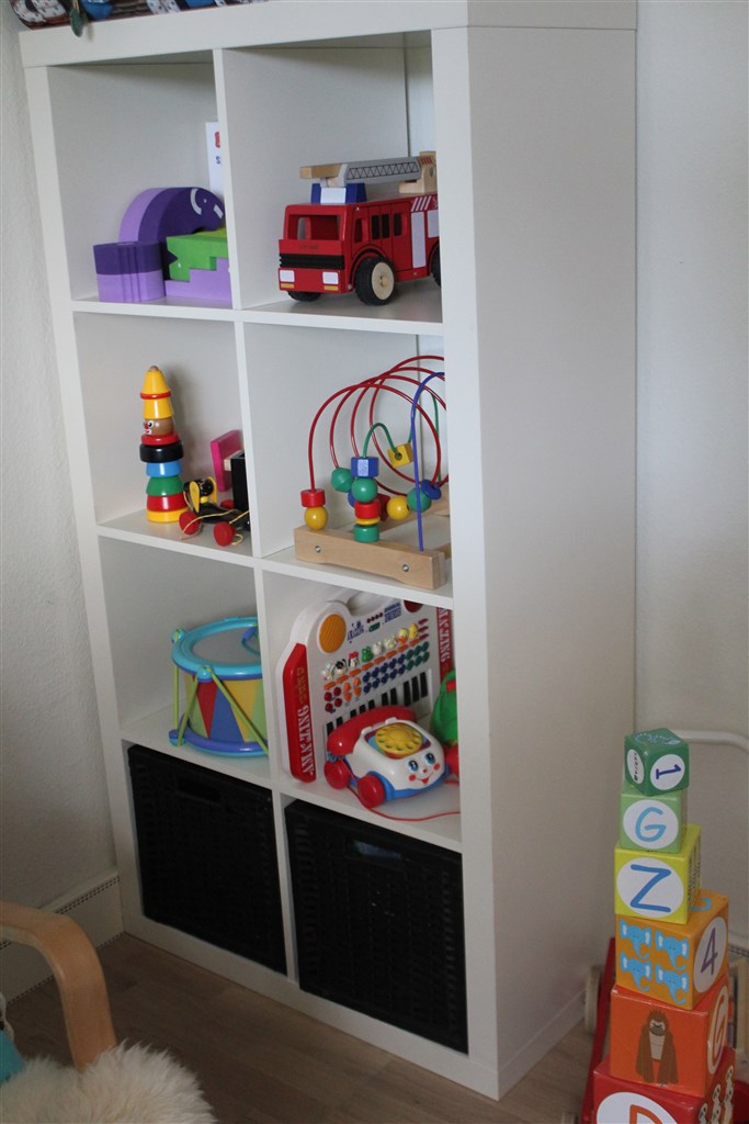 Karla skriver: Ja, det er ikke helt let Vi valgte baljerne, da de så er nemme at flytte rundt på. Tror vi skal have fat i sådan en masse plastik bolde, så skal de nok være i den ene.Så må vi fordele det der er i den i den anden reol - der kan man også tage kasserne ud, så de kan flyttes rundt. Vi skal nemlig have et legehjørne både i stuen og på værelset. Det legetøj vi har er noget vi har arvet. Vil ikke købe noget før efter hun er født - man får sikkert en del i barselsgaver og så er det jo begrænset, hvad man skal bruge fra starten