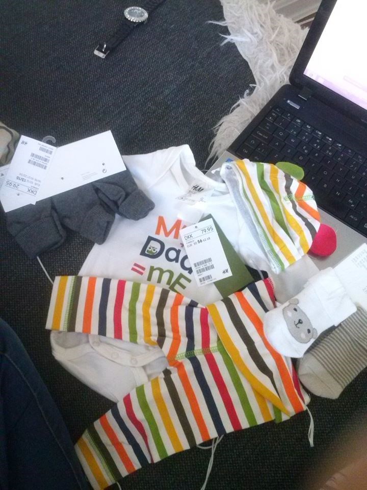 Har lige købt dette! mit første tøj! Body ´+ bukser + hue i str 56 til 79 kr.. og strømperne 3 for 30 go 2 tykke for 30 ..