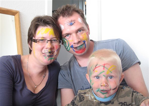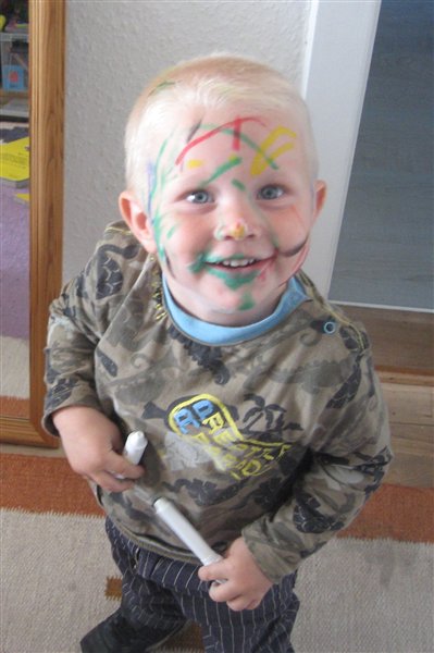 Det var også en anelse grænseoverskridende at lade en 2-årig stå og fægte med farvekridt i ansigtet på mig - men han var virkelig sød og MEGET koncentreret.