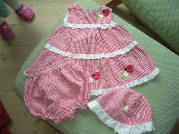 Little bitty sommerkjole m. blebuks og solhat, str. 3 mdr.