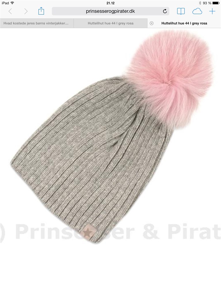 tophue til jakken i uld med rævepels dut i lyserød fra huttelihut 349kr