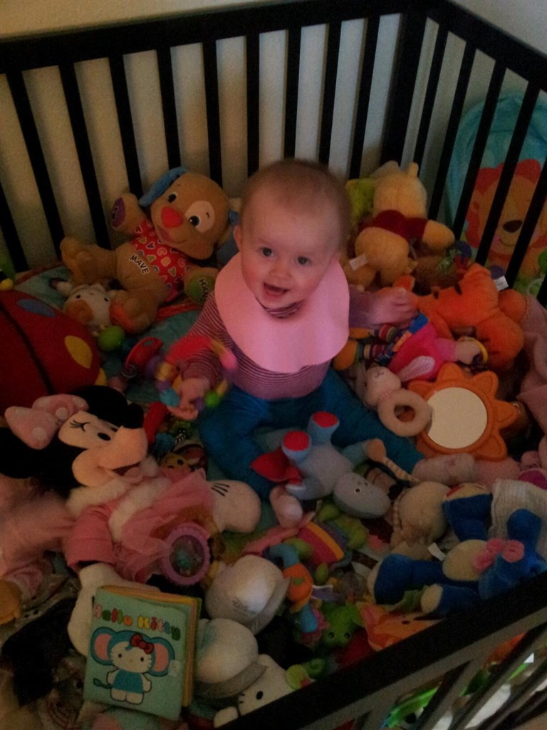 Nu arbejder isabellas farmor for det gamle top toy så hun får det nærmest kastet i nakken. Så vi købte faktisk ikke noget selv. Men hvis vi ikke havde hende havde jeg købt lidt selv. Og der ville jeg nok have købt lidt rangler og nogle af det der lamaze. Det er super legetøj fordi det er i mange farver og meget forskelligt materiale. Farverne kan baby ikke se den første tid. Men de er stadig spændende at kigge på og så kan de fleste sige knitre lyde. Det var Isabella specielt begrejstret for