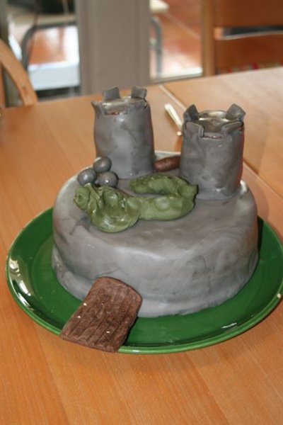 Idéen var god nok. Tiden gik bare for stærkt. Og så fik jeg hjælp af Sebastian på 4 år. Han har helt selv lavet dragen. Ikke den kønneste kage, men vi havde det rigtig sjovt