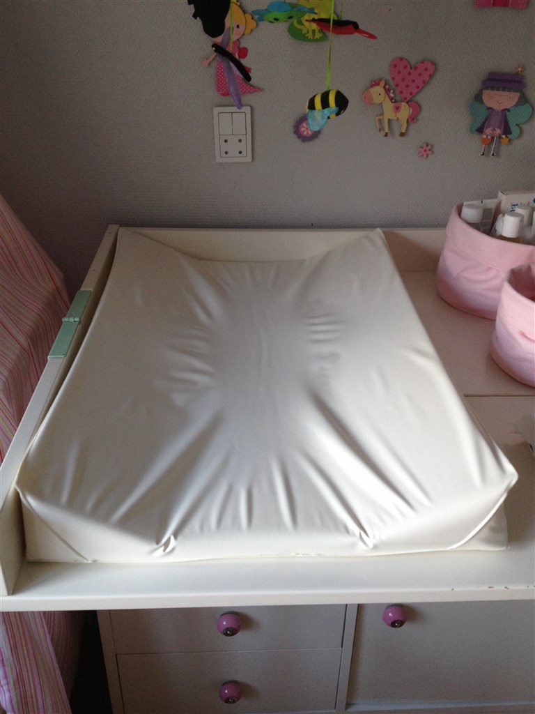 liten-mamma skriver: Den er bare helt hvid, med en glat overflade, så den er nem at tørre af