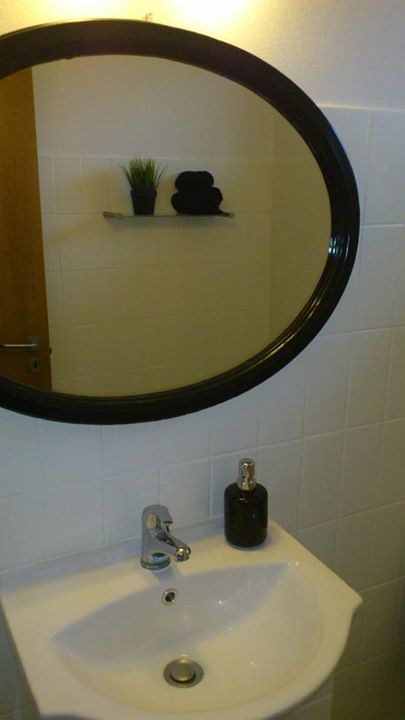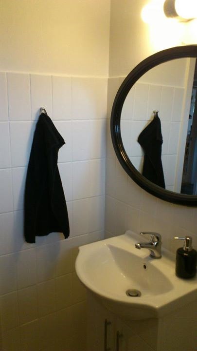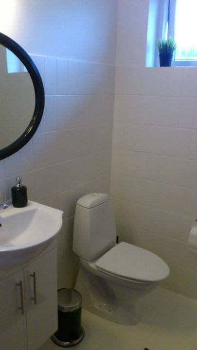 Da vi flyttede ind i vores hus den 1.juli, var der malet hvidt på badeværelses klinkerne, det så rigtig fint ud og løfter badeværelset meget i forhold til et grøn brunt look som stenklinkerne
