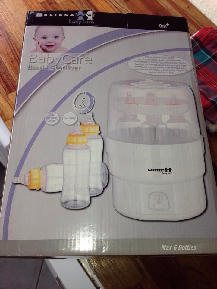 Har en der minder om den, min er bare fra Avent. Der skal man hælde 90ml vand ned i den, flasker og tilbehør sættes i, låg på og så skal den bare tændes! Super enkelt!