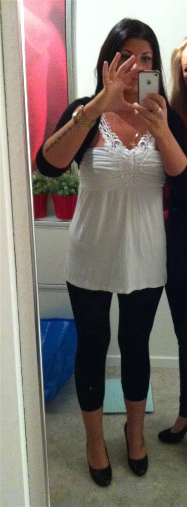 Anonym skriver: Tak for de gode råd.. Og fantastisk du vil ligge billeder ind Jeg er helt vild med den hvide top med blonder på! Jeg tænkte osse leggins.. Bare mere hva top man skal tá på Men hold da op hvor er du smuk..!!