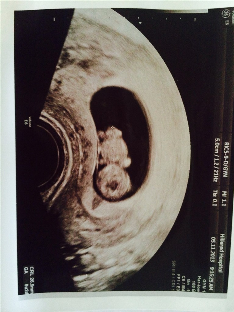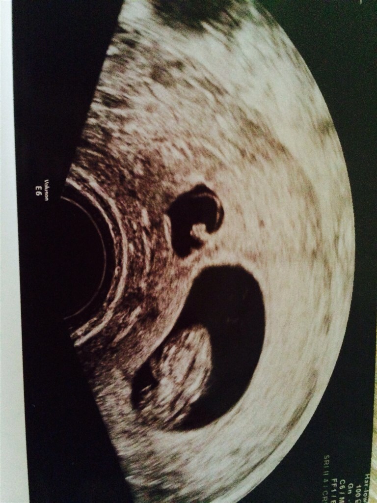 Scanningen idag viste et fint lille foster med arme og ben og et hjerte de slog.