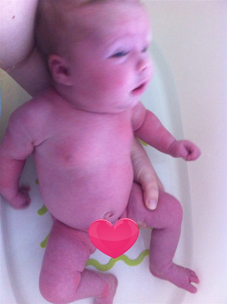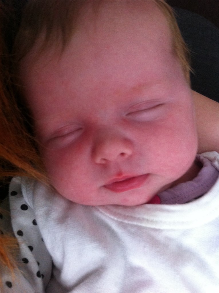 Sidst vi var til sundhedsplejerske (sidste onsdag) vejede hun 4800 g og var 57 cm.