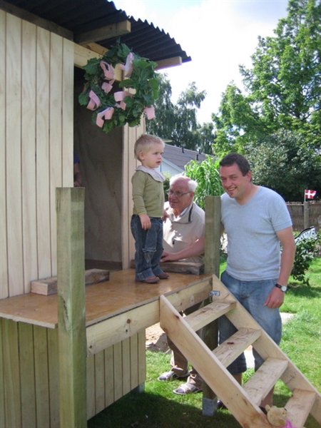 Fra os fik de et (hjemmelavet) klatre/legetårn - der dog ikke er helt færdigt. Det mangler rutshebane, kaltretov, dør og vinduer.. og selvfølgelig maling (hvilket jeg glæder mig meget til at nusse med)