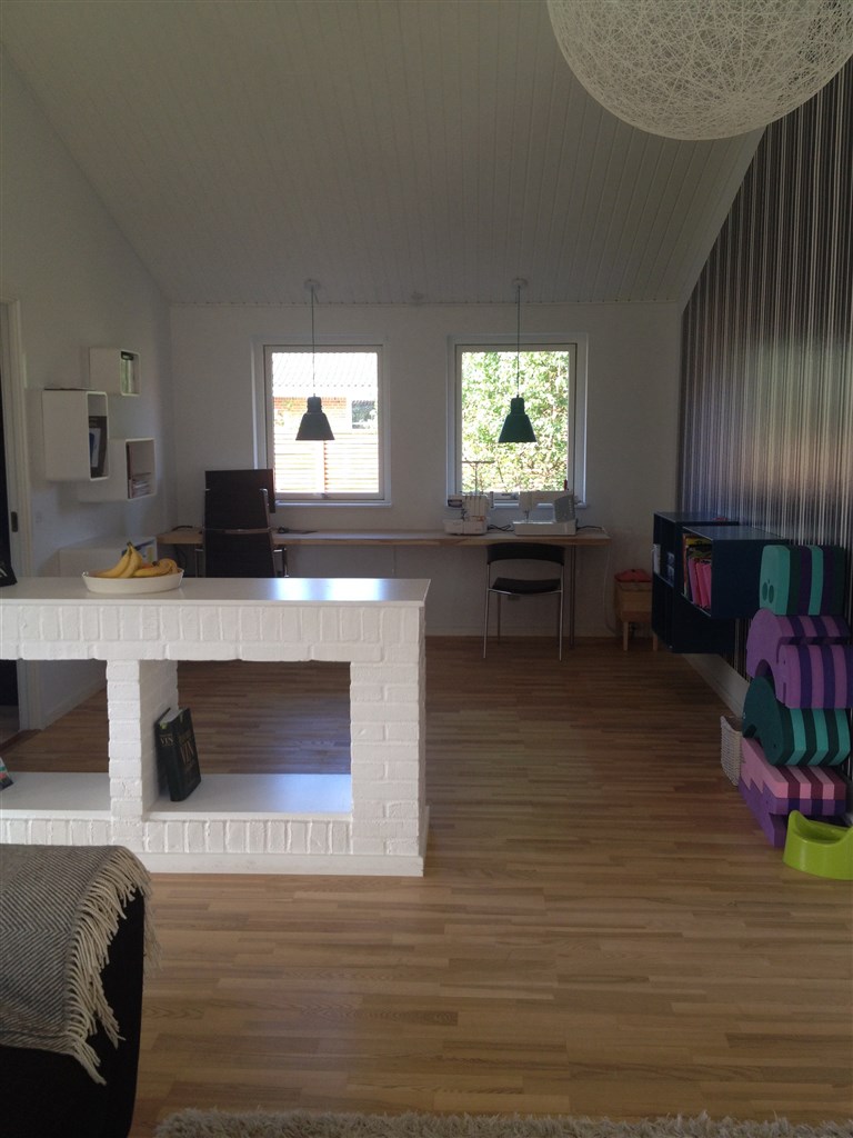 Vi har indrettet et kombineret kontor/syrum/legestue i vores stue