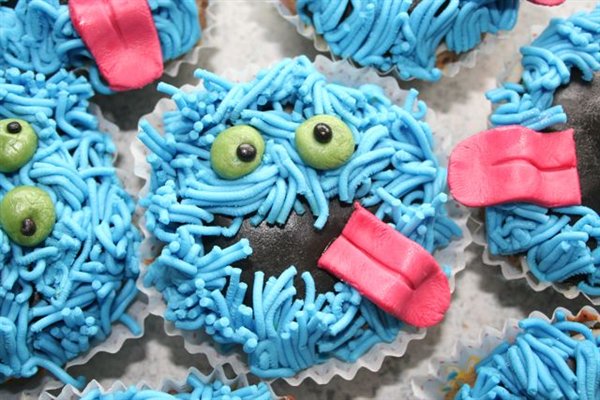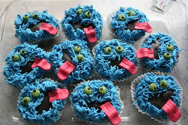 Til mandens fødselsdag med familien lavede jeg monster muffins. Idéen kan jeg ikke tage æren for, men de var dælme sjove at lave.