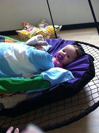 Lige så vild som Vigga kan være, lige så stor livsnyder og puttetrold er hun. Så når der skal soves formiddagslur, så bliver det nogen gange på sansegyngen. Det er ikke til at modstå mors nynnen og gyngen der vugger.
