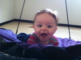 Vigga har haft mange mave problemer som spæd og jeg har gået mange timer med hende, vuggende i mine arme for, at få hende til, at falde til ro men det kan sansegyngen også hjælpe med. Da jeg hentede gyngen, snakkede jeg kort med Erik Hougaard som opfandt sansegyngen i 2001, og han fortalte at, den havde en god virkning på kolikbørn fordi den stimulerede maven. Jeg ville ønske jeg havde haft den på det tidspunk, så jeg ikke havde behøvet, at trave vores trægulv tyndt. Vigga kan stadig have dage hvor maven driller og der hjælper det at komme op og ligge på gyngen, på maven, på et varmt tæppe.