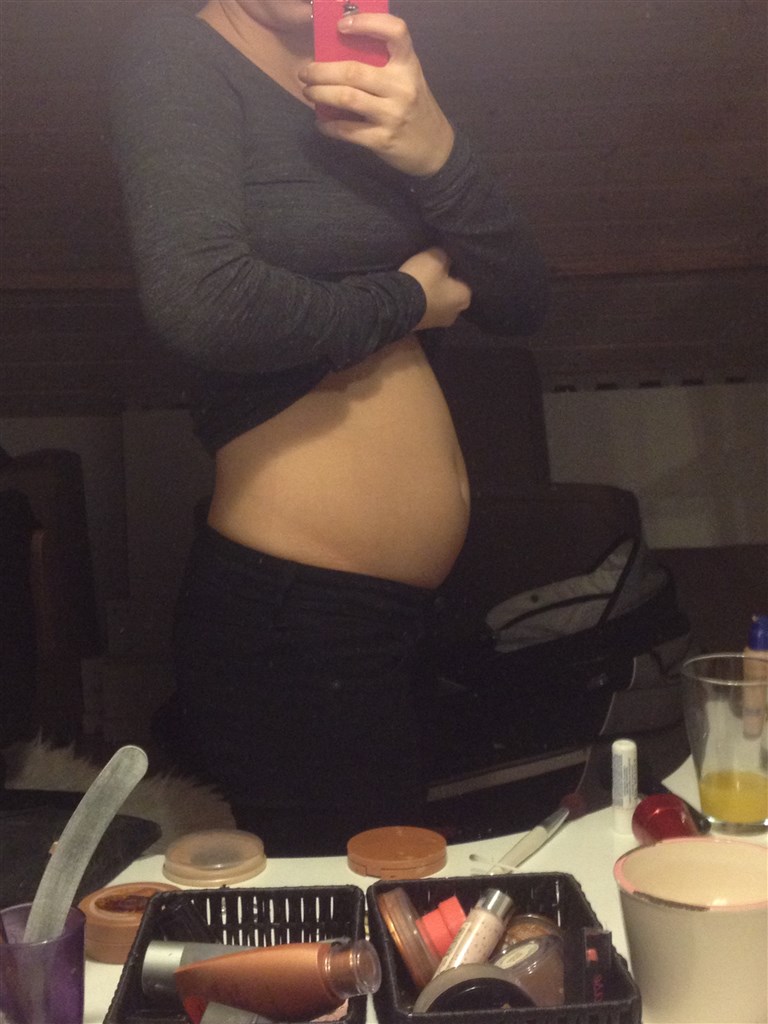 Jeg er gravid 8+1 og har allerede måtte købe nye bukser som maven kan være i. Det er min første graviditet og regnede ikke med at det ville kunne ses før om laaang tid!