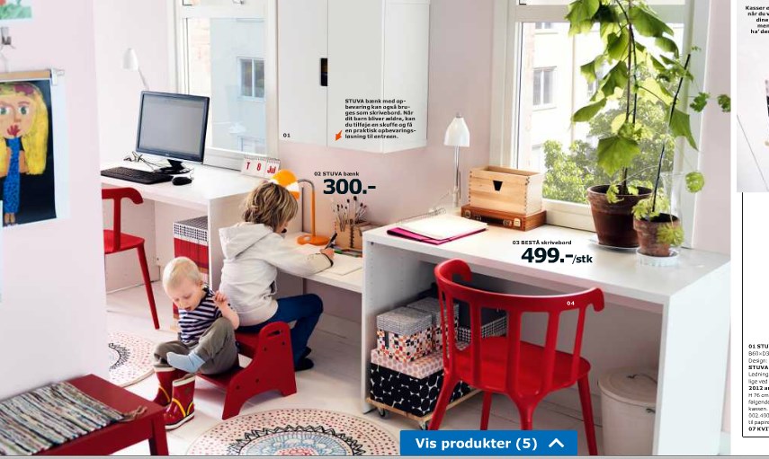 Nu har jeg ikke børn endnu, men når vi får er planen er at vi købe den lille bænk som vist her på billedet og sætte mellem vores skriveborde.