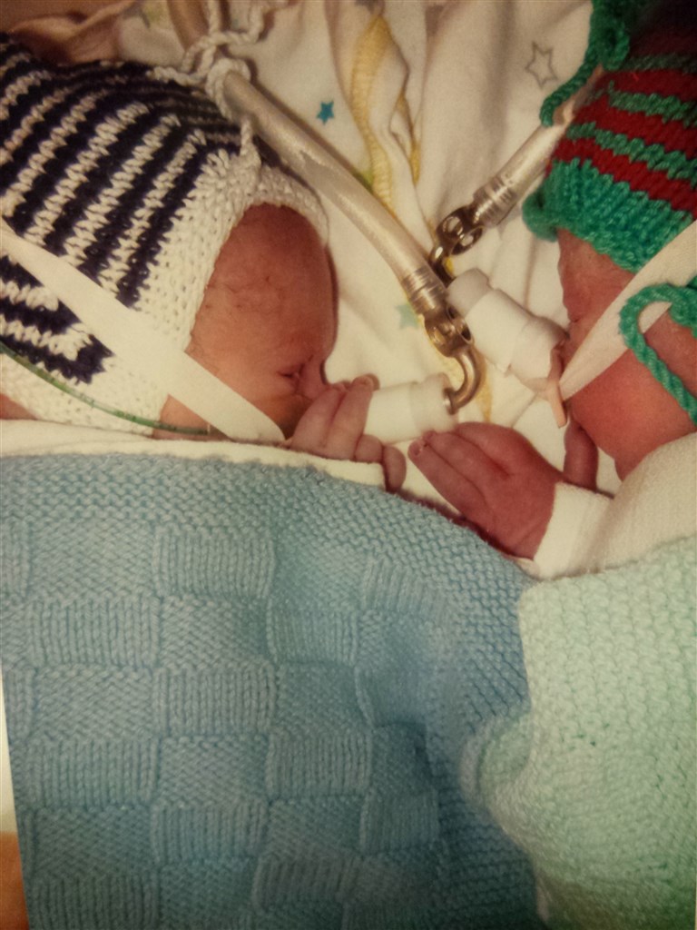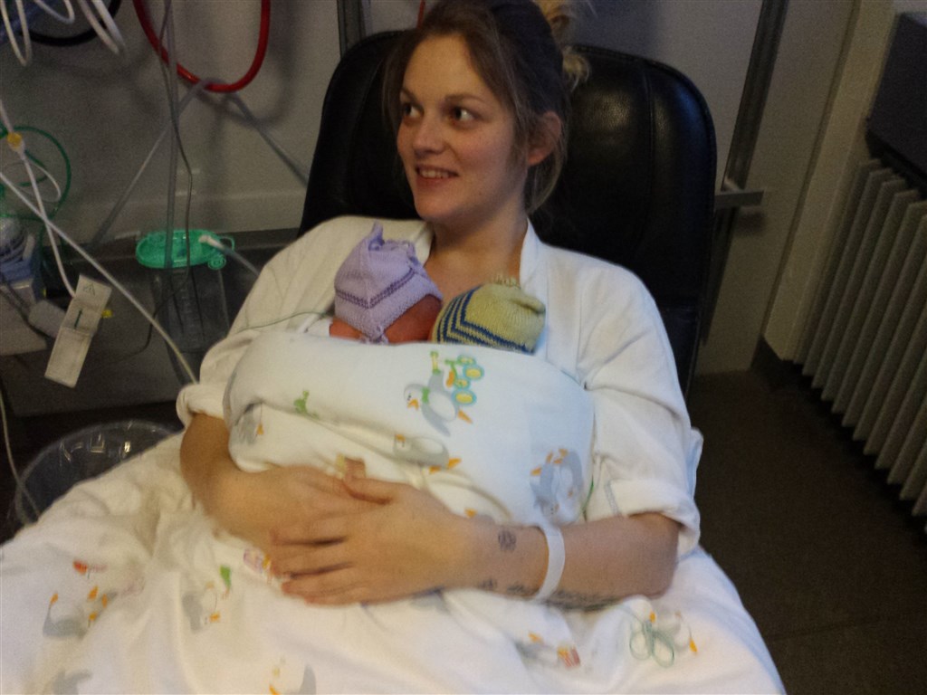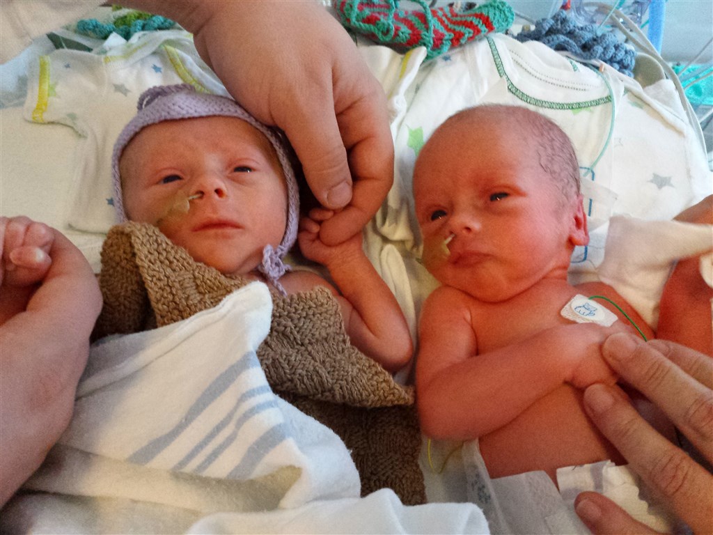 Begge kom op på mit bryst lige da de var kommet ud, og bagefter ned på neo :-) de klare sig så godt de allerede morgenen dagen efter kom ud af kuvøse, og cpap og har bare klaret sig selv med madhjælp fra sonde. Og jeg malker ud til dem :-)