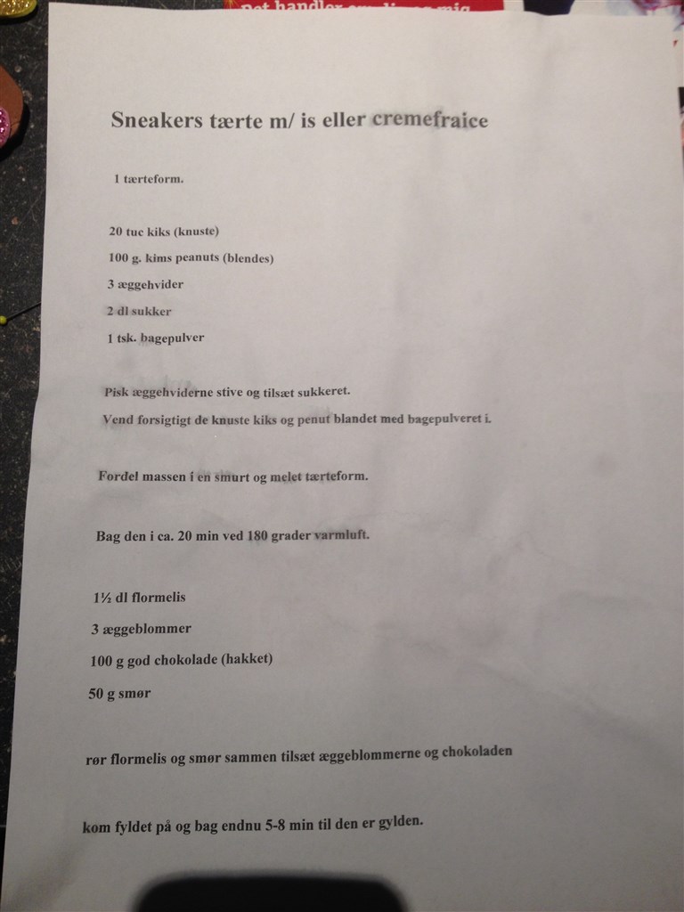 Jeg har lige prøvet at bage sneakers tærte mmmmm smagte lækkert med vanille is til OO