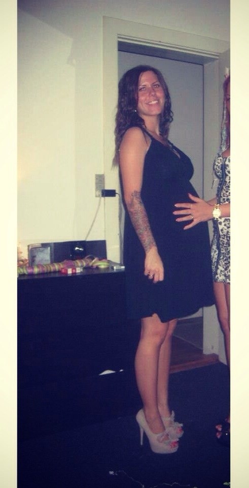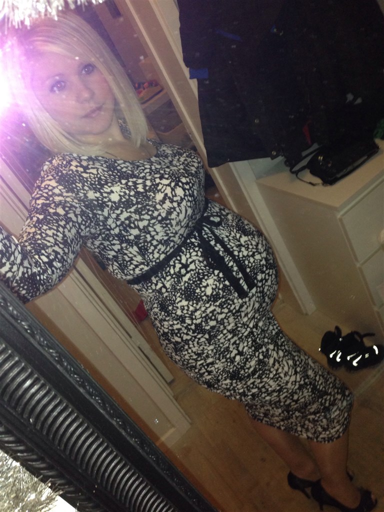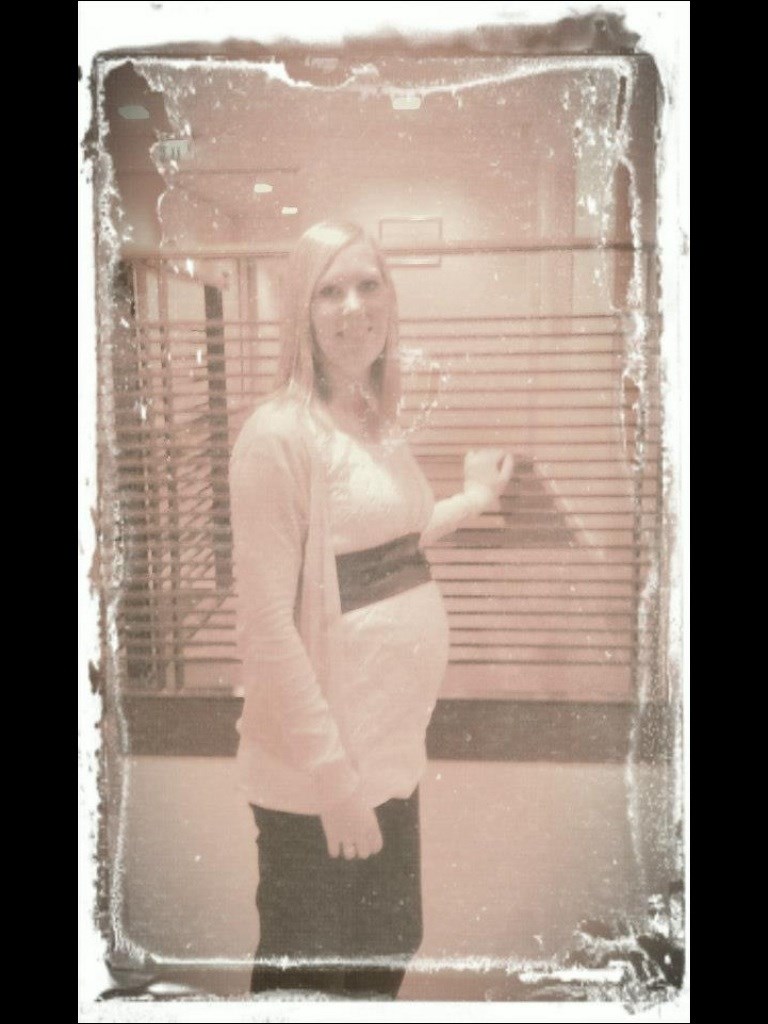 Juleaften havde jeg en måned til termin og jeg havde bare leggins, en hvid top og cardigan på (første billede)