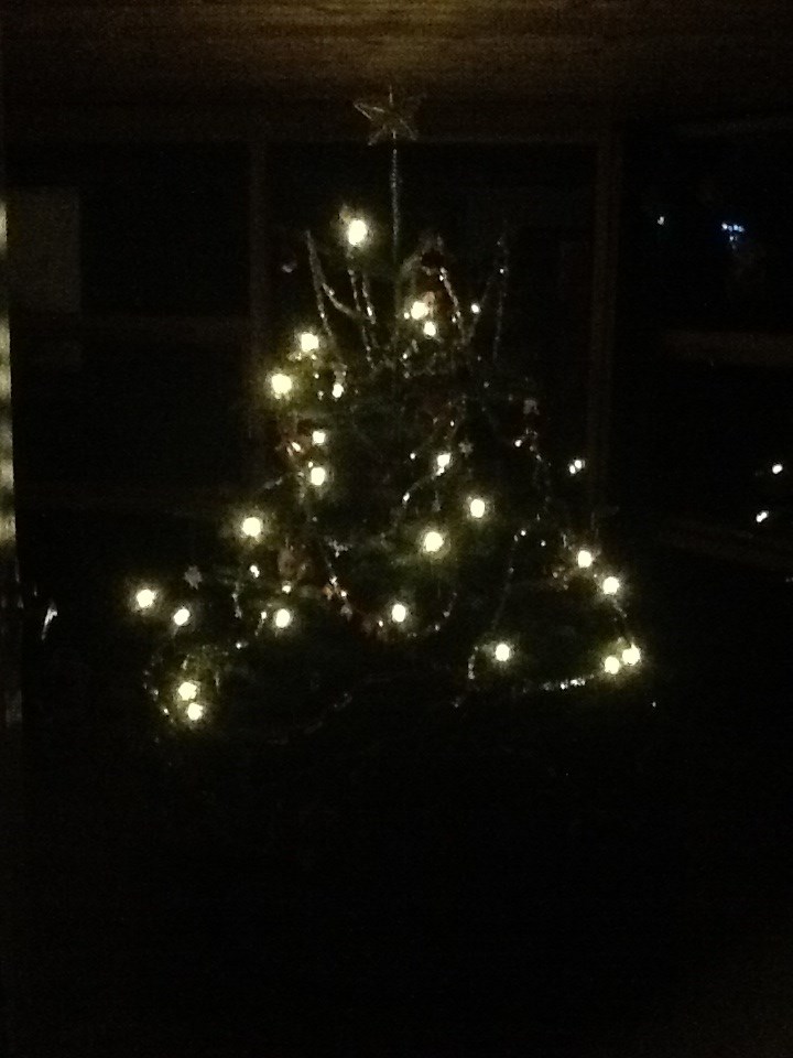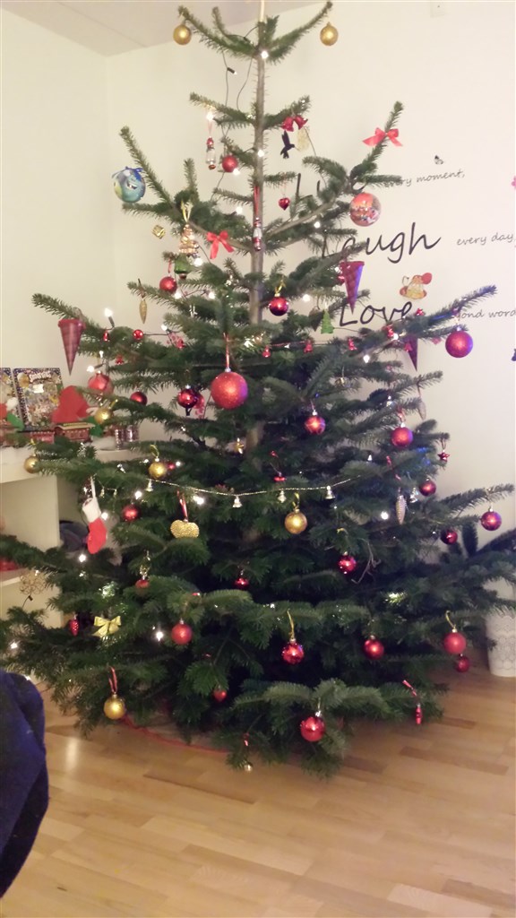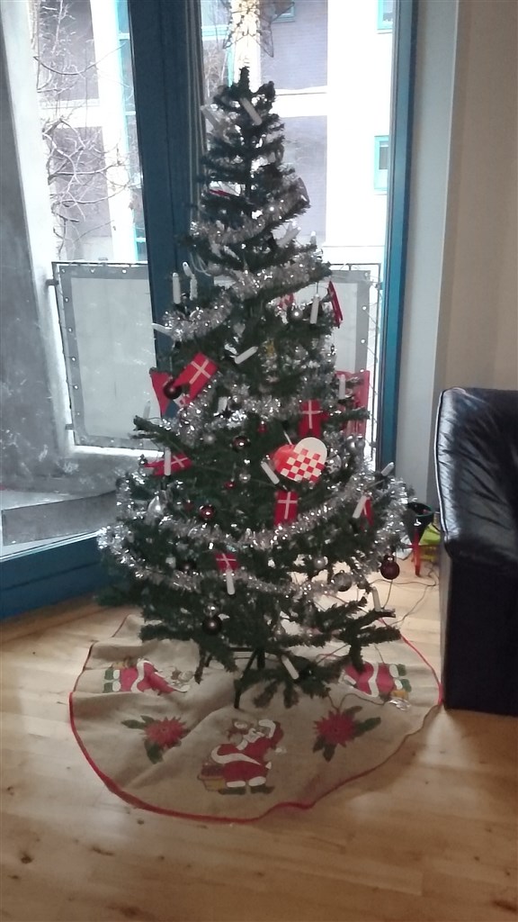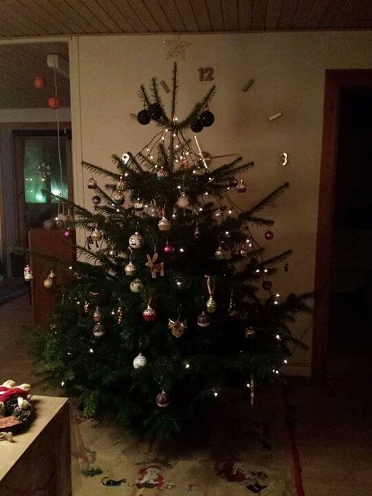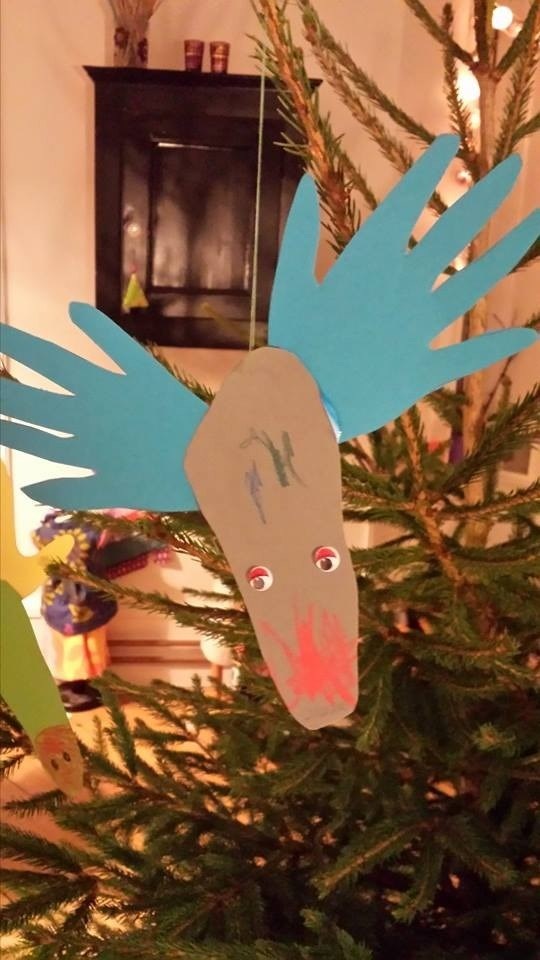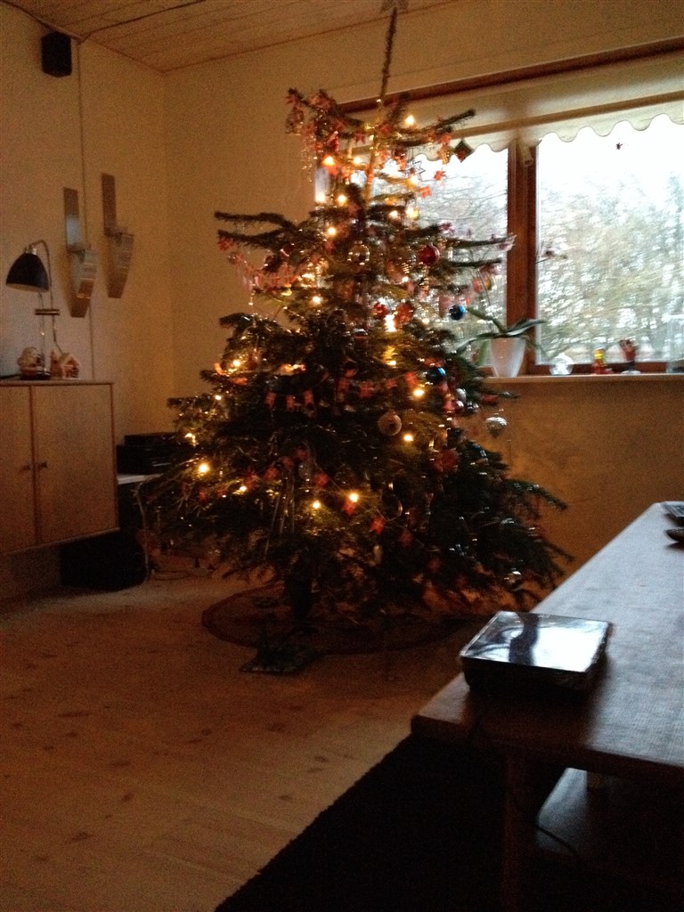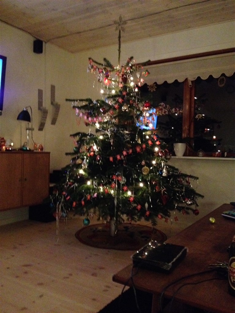 Vores træ skal først pyntes her til morgen, men ungerne kunne ikke lade være med at hænge deres Rudolf op i går