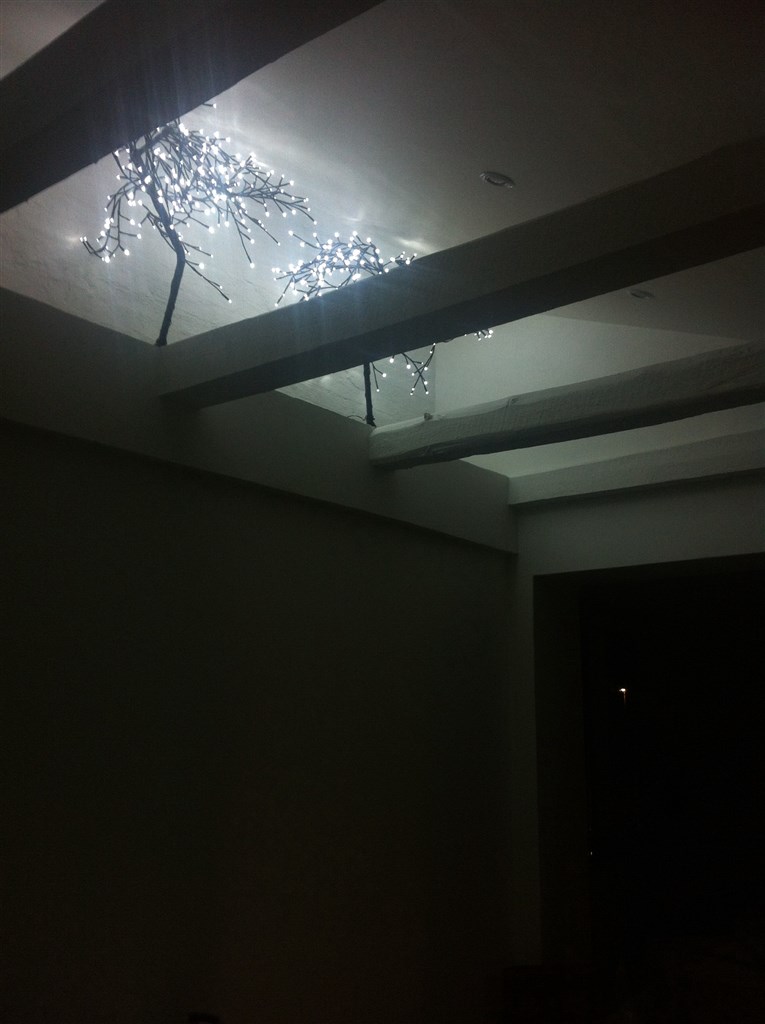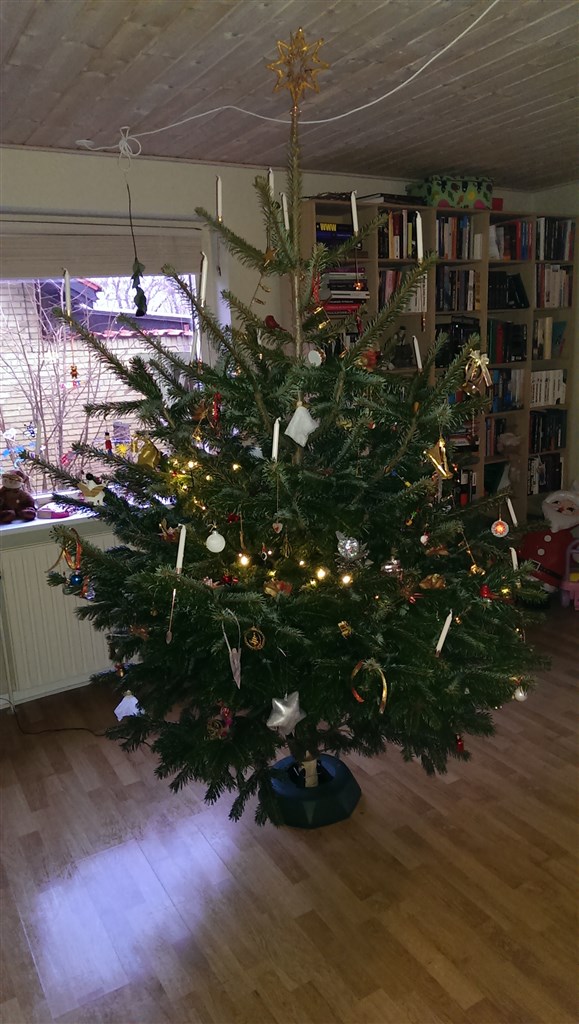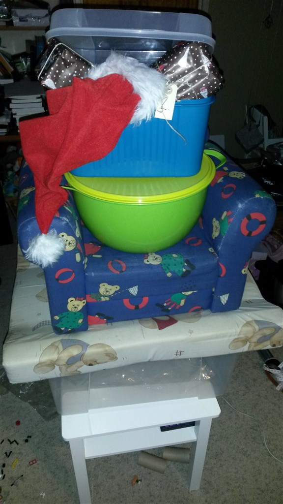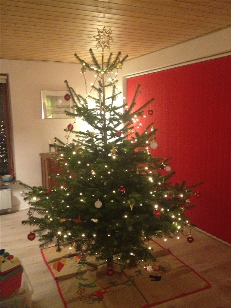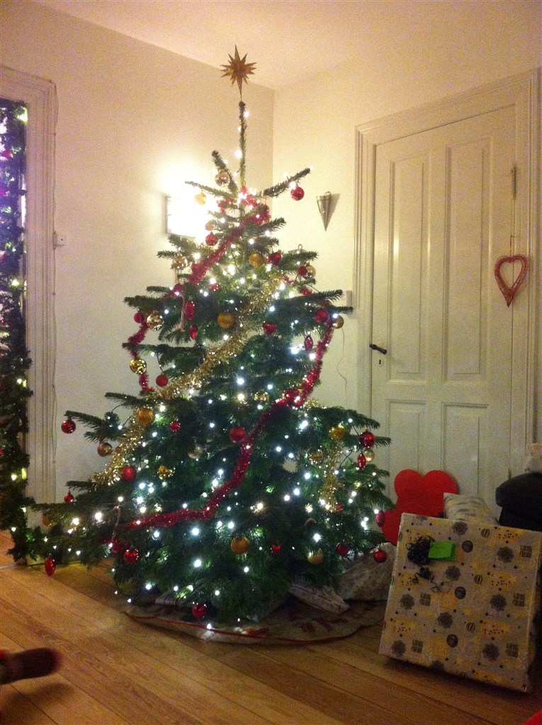 Billederne med møbler i stakke og småkager med mel og sukker, det er når drillenissen har været her om søndagen med gaver, så laver han altid uorden i det hele