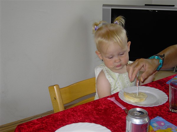 Caroline havde hele 3 fødselsdage, og selvom det var hyggeligt, er jeg glad for at der nu er knap 1 år til næste omgang. På selve dagen kom hendes dagpleje med unger, og det var lidt et hit efter næsten 14 dages ferie, så der blev leget. Lørdag kom familien så, 18 stk, og søndag kom vennerne med deres unger, 17 stk, så der var nok at se til. Caroline høstede et væld af gaver - bl.a. en bunke tøj og hårspænder (nu hun endelig har lidt hår at sætte