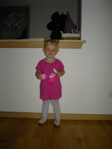 ), møbler til værelset (køb IKKE dem fra babysam), en frygtelig teletubbie-bamse, der larmer!!!, HABA træmad, My Little Pony til bad, pusletaske til dukken, Bamses Puttekasse (dvd), Lego Mega Bloks, rive, spade og kost til udendørs brug og penge. Af os fik hun en prinsesse drømmezone (en slags hule), sæbebobbelmaskine og the-stel.