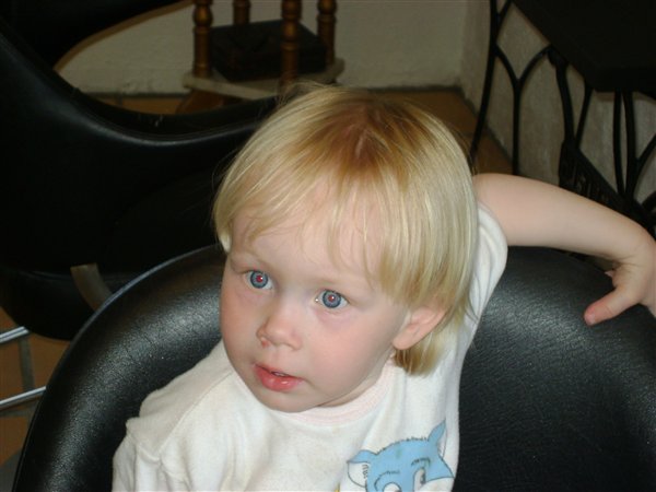 Danielle var godt på vej til langt hår, men jeg gik selv og studsede det til det blev så tykt at jeg måtte bøje mig og finde en frisør. Hun mente at for det første skulle mit "hjemme sjusk" rettes til og for det andet var det godt at få alt det fine babyhår af en gang for alle så lige nu er hun megakort, men det vokser godt, så inden længe har hun vel en kort page igen, mine piger skal i al fald have langt hår, ja storesøster har det jo allerede og har altid haft det.