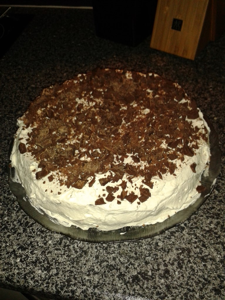 til sidst, top på med flødeskumsovertræk, og siderne pyntes med alle bundene fra flødebollerne