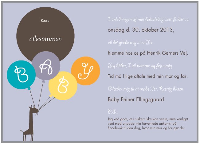 Med lillesøster sendte jeg en fødselsdagsinvitation ud til familien og de nærmeste venner (se billede 1)