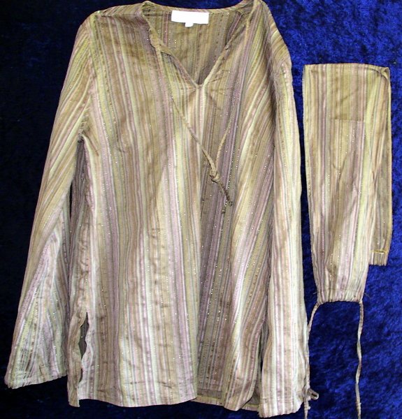 Rigtig lækkert stof, nærmest lidt silkeagtigt og så er der det fine bånd til at binde om maven så den rigtig bliver fremhævet.