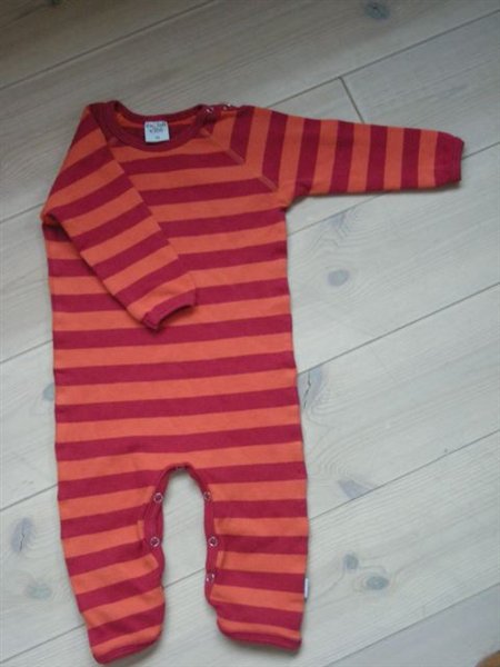 Billede 3: 1 stribet bomulds heldragt i str. 74. .........Pris 60 kr.