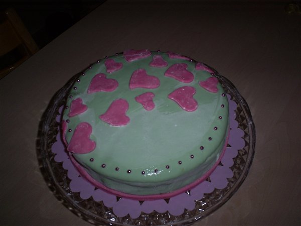 Ja, så fik jeg også lavet min første kage. Må sige at min respekt for jer der laver de der flotte kager er ikke blevet mindre. Hold da op det var svært og jeg kan fortælle jer og jeg var klistret ind og kage og creme og mmf. Puha. Havde Thomas klasket mig op på en væg blev jeg der
