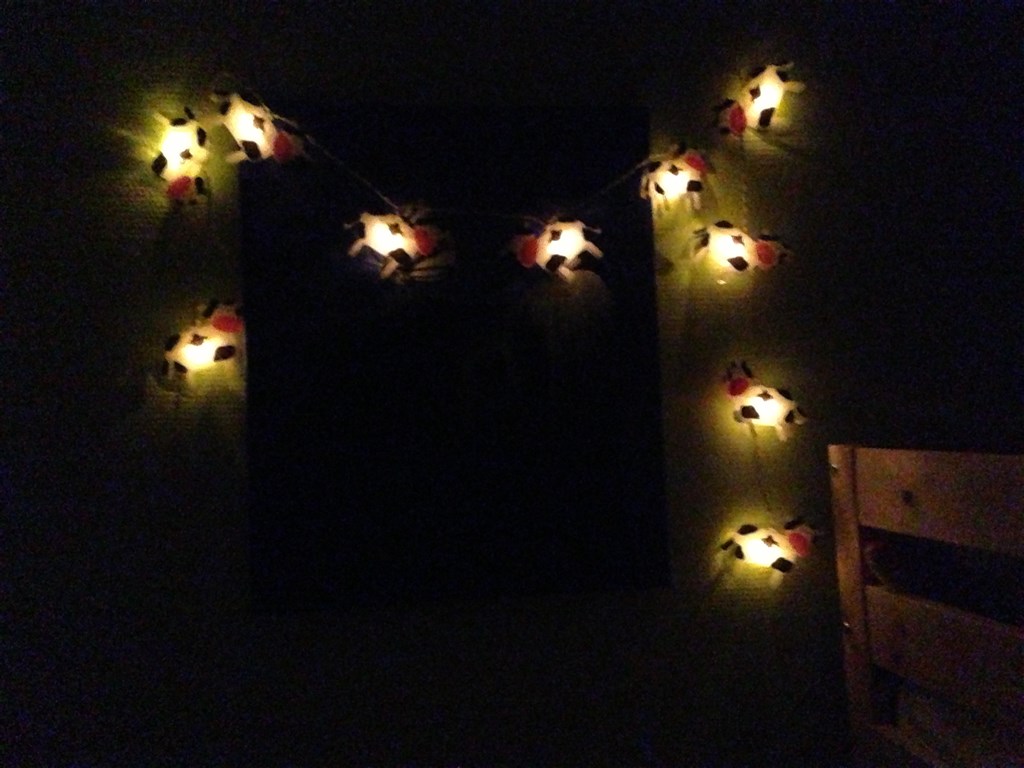 Min søn er ihvertfald glad for den her, og min datter har ingen lampe, der er kun skæret fra gangen gennem dørsprækken