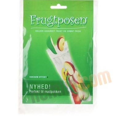 Her bruger vi frugtposer - skærer frugten ud, smider det i og puster posen op, således at frugten er vacum pakket - og super friskt dagen efter ( laver madpakke dagen inden ) så vi bruger de almindelige, lidt dyre, frugtposer