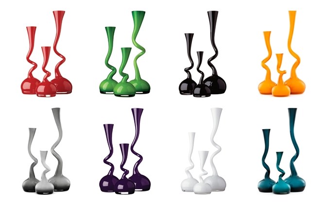 Farvede pynte ting på svævehylderne, fx farvede billederammer, farvede vase.
