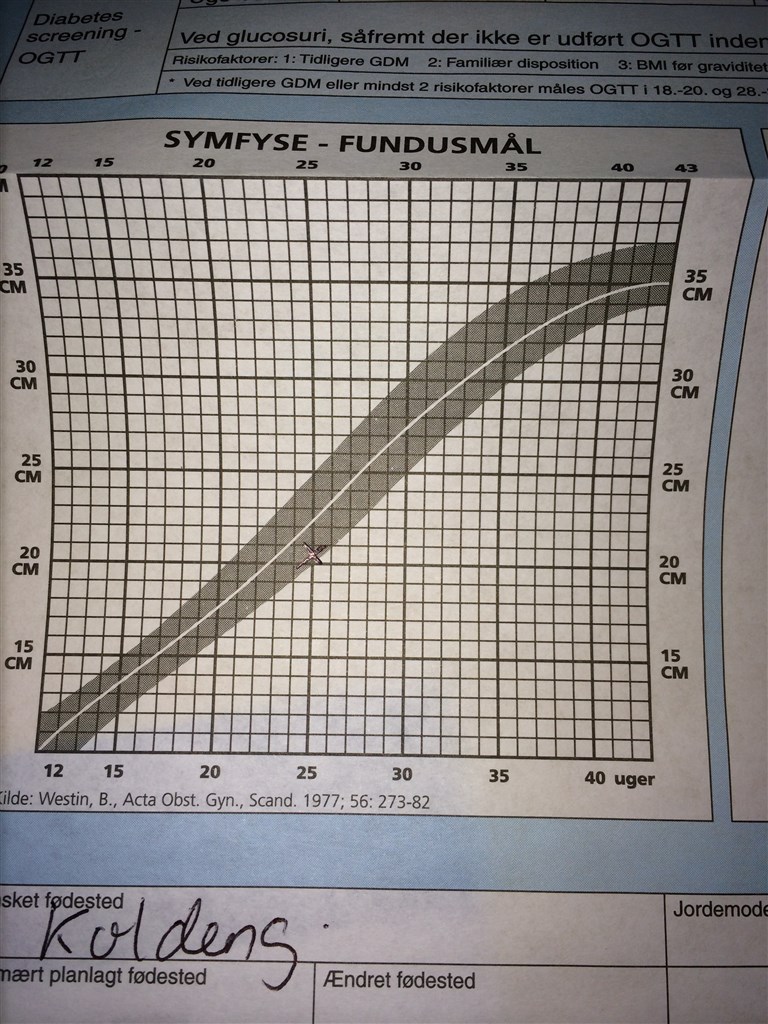 Så sagde min læge til mig, at jeg skulle gøre min jordemoder opmærksom på at han syntes baby ligger lidt lav i forhold til kurven, men stadigvæk indenfor normalen.