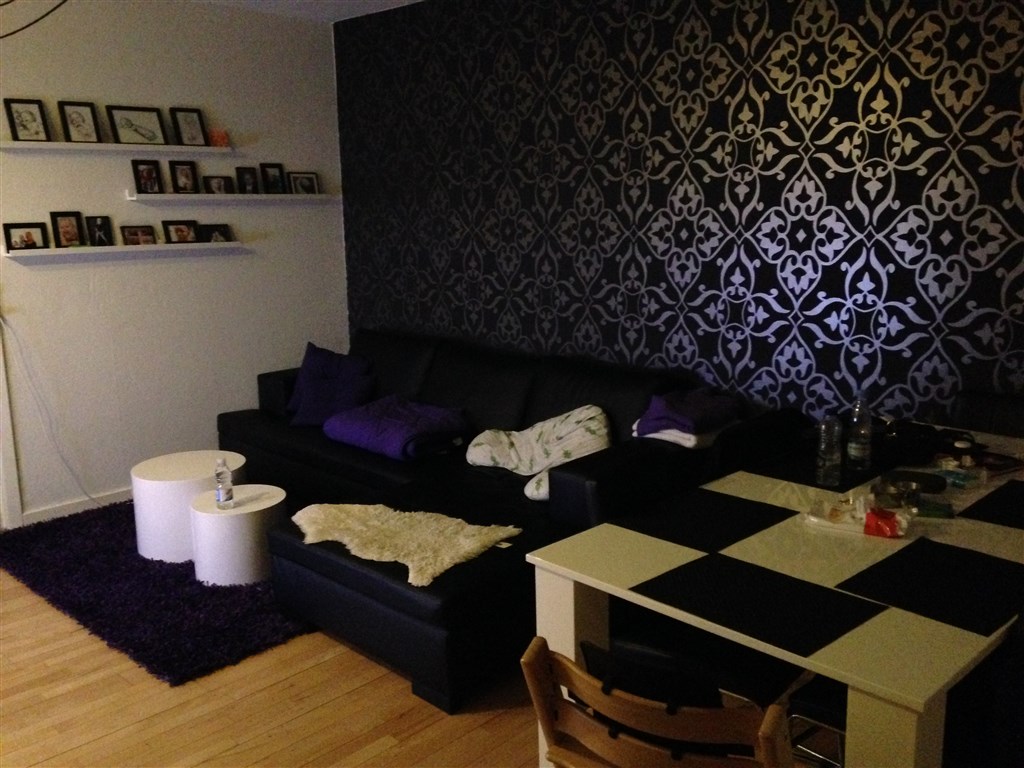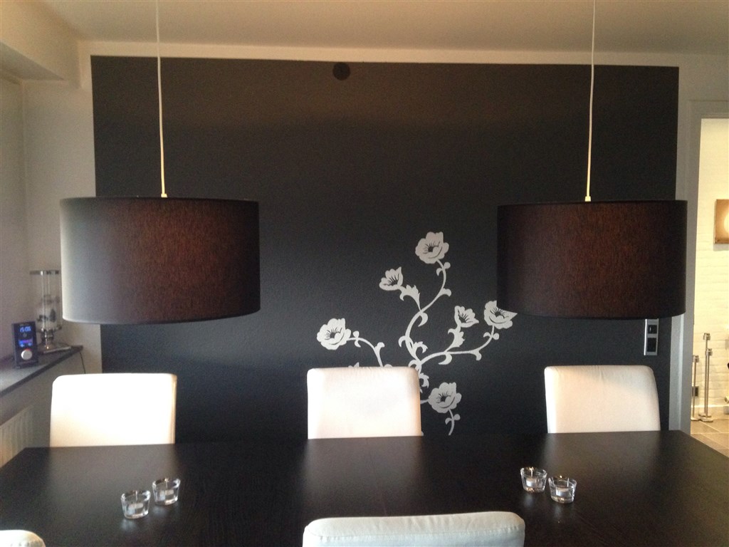 Er nemlig gået i gang med makeover af huset med min veninde , og vi er kommet ret langt .. Det har hele tiden været meningen af væggen bag sofaen skulle være sort hvid stribet , men nu tænker vi det ville være nemmere at få andre ting til at passe ind hvis den var mørk i stedet .. Har nogle en mørk væg som jeg må se ?