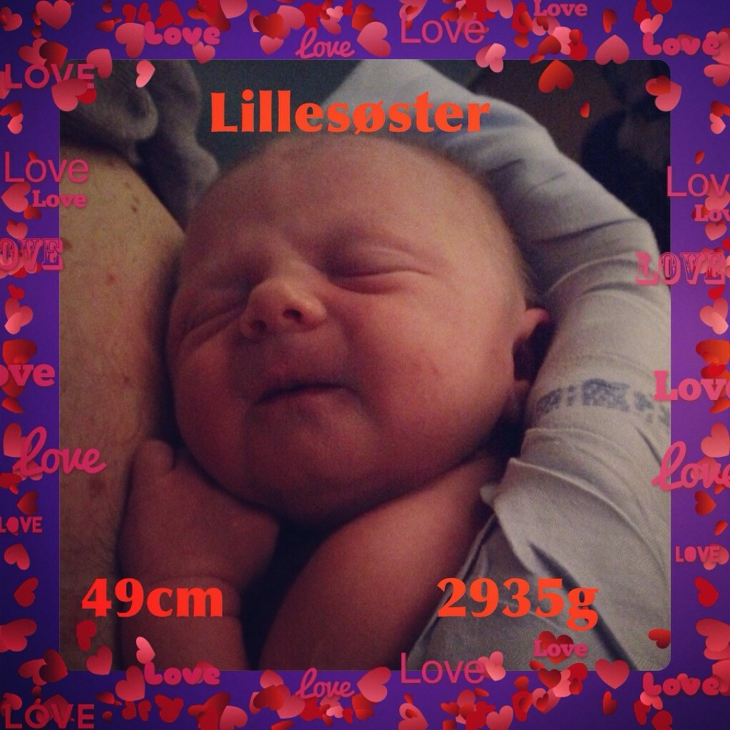 Lillesøster var et lille nips på 49cm og 2935 g, født 11 dage før termin præcis, som storebror.