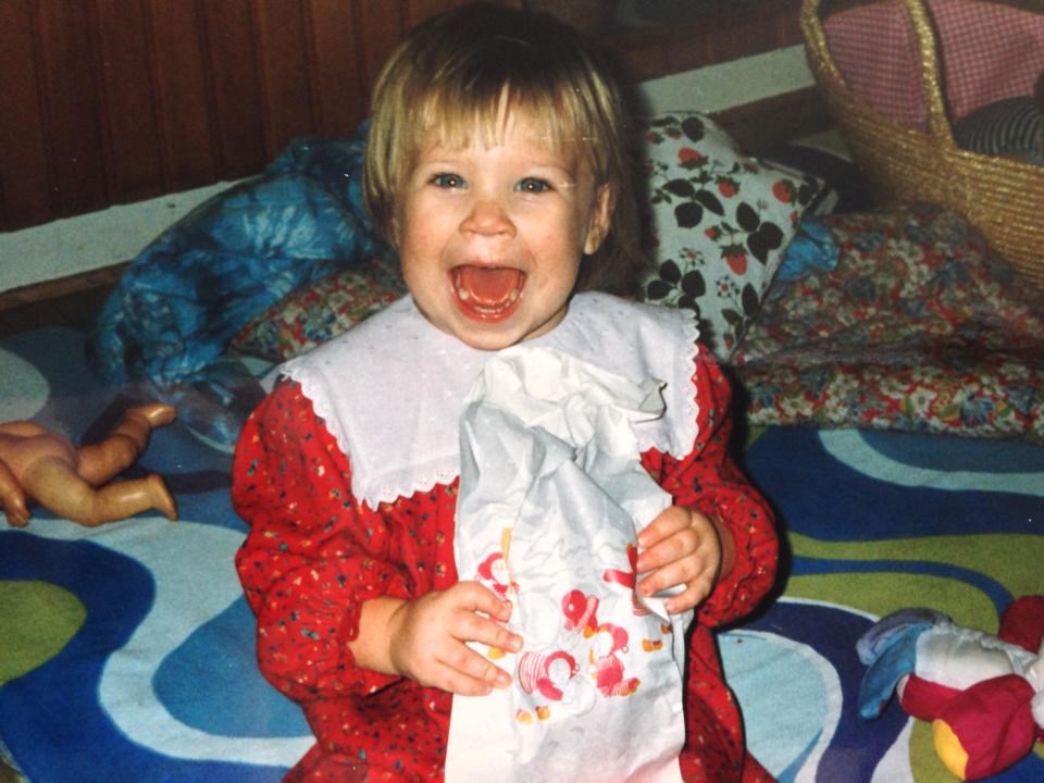 På billederne er vi begge 9 måneder ca.