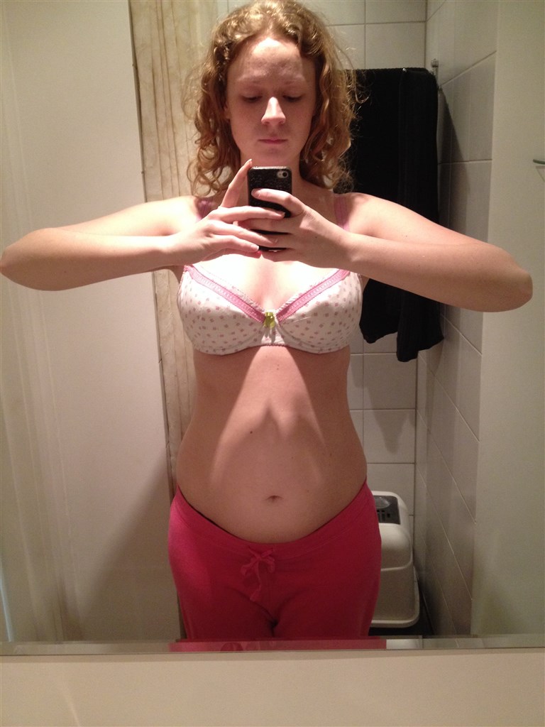 Maven vokser der ud af. Jeg synes også den er begyndt at blive lidt rund forfra