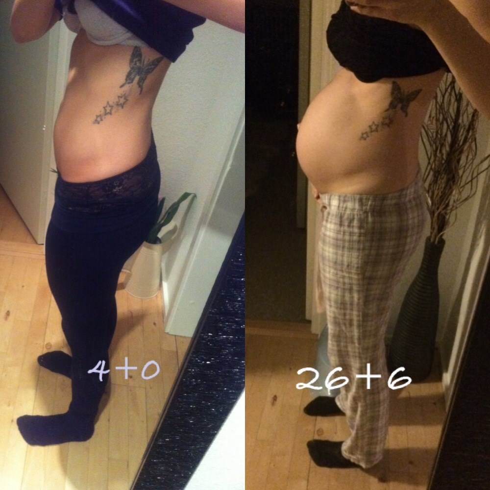 MMOGM skriver: Fik godt nok et chok da jeg sammenlignede disse to billeder med hinanden Lillepigen vokser vist godt derinde Vægten siger +9,5kg. Og de kan godt nok mærkes! Føler mig så tung i r*ven