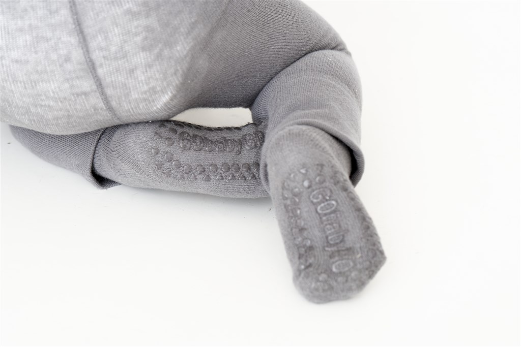 GoBabyGo laver skridiskre strømper, strømpebukser, leggings og knæbeskyttere med skridsikre dansk designet gummidutter på knæ og under foden.