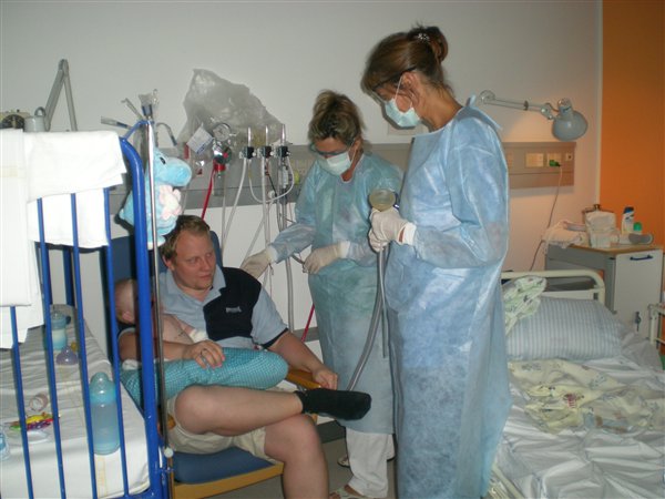 Ja vi er stadig indlagt, Viktor fik feber i søndags og havde lidt symptomer på influenza, så nu er vi isoleret og Viktor er podet for øffe influenza, han er startet på tamiflu og vi får så svar idag på om det er det. Men jeg tvivler, for han er feber fri nu